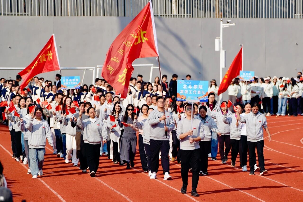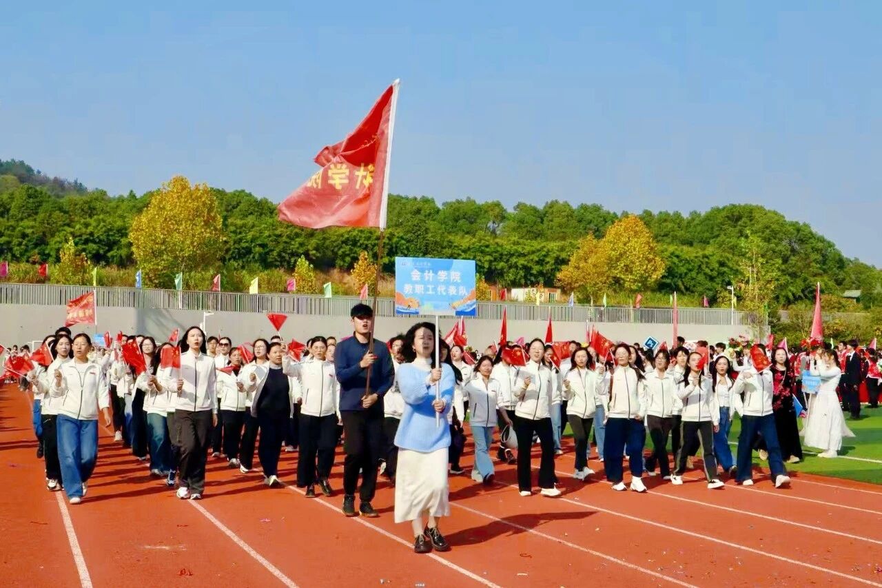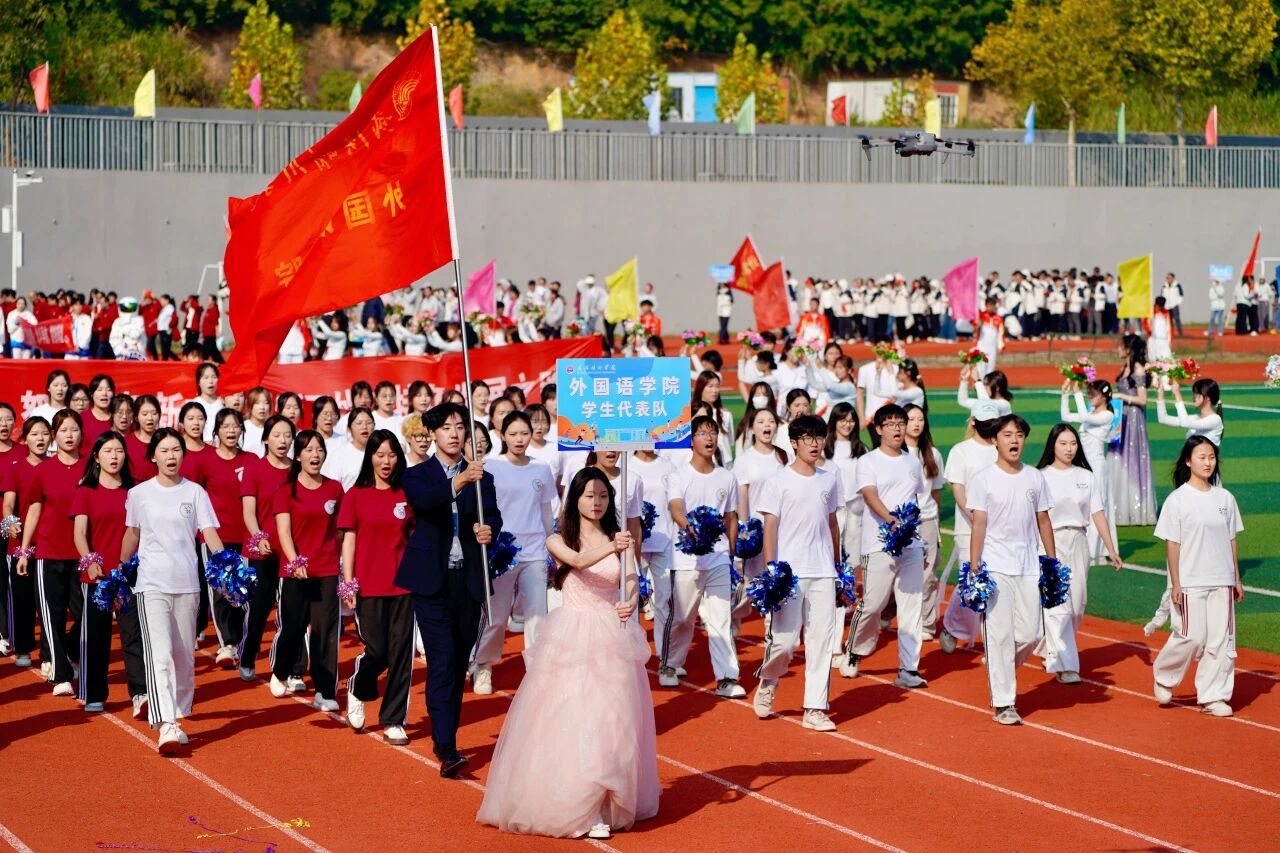 随着激昂澎湃的《运动员进行曲》响起,各支队伍依次入场。国旗护卫队英姿飒爽,校旗方阵步伐坚定。五彩斑斓的彩旗与鲜花方阵,如流动的调色盘,绘出晴川最美的秋日画卷。大学生自律委员会的同学们,以退役不褪色的军人风范,成为一道亮丽的风景线。各学院学生方阵更是“八仙过海,各显神通”,教职工方阵也一改平日的严肃,踏着轻快的步伐,向同学们挥手致意,引来阵阵欢呼。