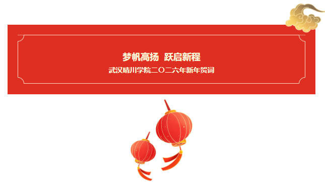 当时光的刻度从2025迈向2026之际,我们心潮澎湃,信念满怀。值此美好时刻,我们谨向躬耕奉献的全体教职工、向勤学笃行的晴川学子、向情系母校的四海校友,向所有关心支持武汉晴川学院建设与发展的社会各界朋友,致以诚挚的问候与新年祝福!